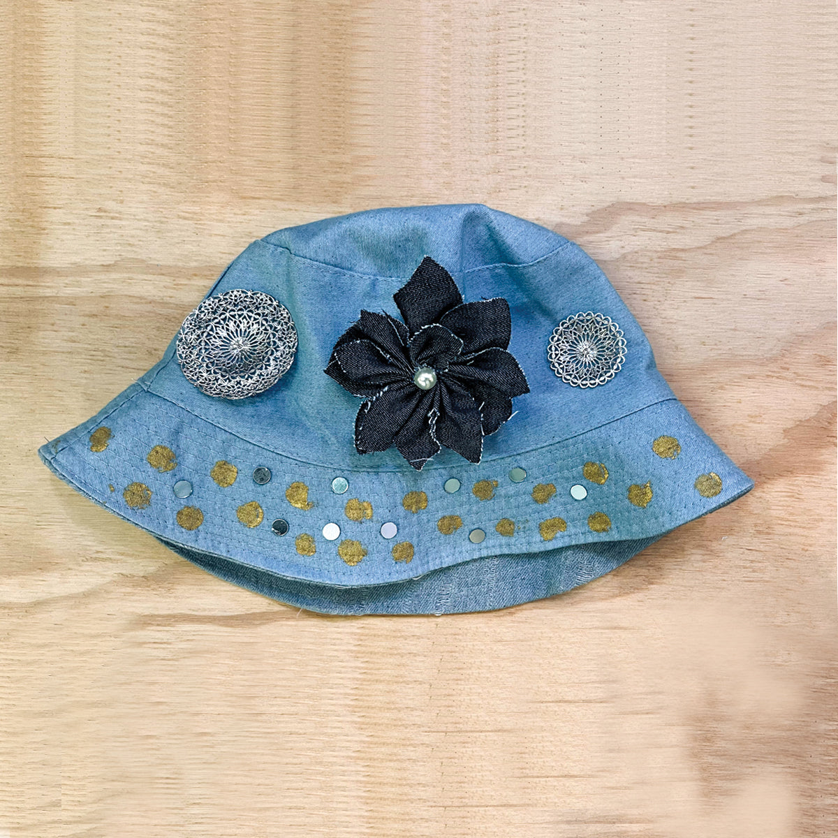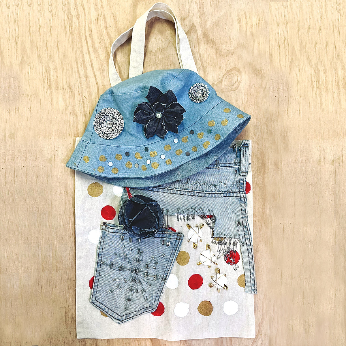 Content: Using colours, patterns, leftover denim, and accessories such as ribbons and buttons, participants will decorate a tote bag or bucket hat. The workshop instructor will suggest design directions and provide basic fabrics, materials, colours, and tools for participants to complete their creations.
